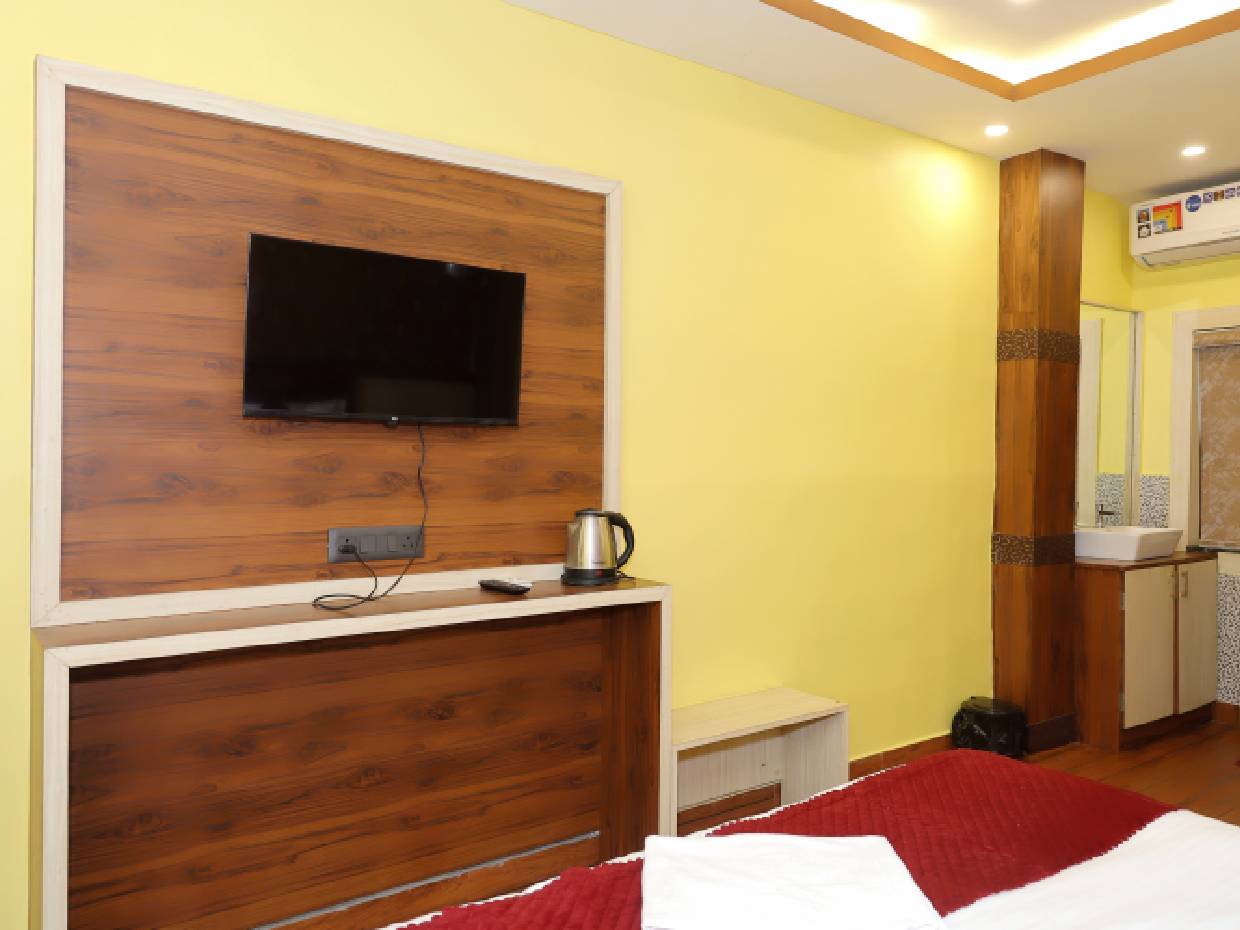 The Deluxe Room offers a cozy and stylish stay with modern amenities designed for comfort. Featuring elegant interiors, comfortable bedding, air-conditioning, and essential facilities, it ensures a pleasant experience for business or leisure travelers. Perfect for guests seeking value and relaxation, the room combines simplicity and convenience for a memorable stay.